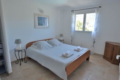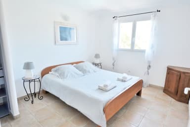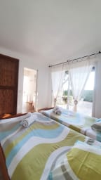 2 chambres avec chacune 2 lits de 80 (pouvant etre rapprochés en un lit de 160) avec une salle d'eau communicante donnant sur une terrasse vue mer