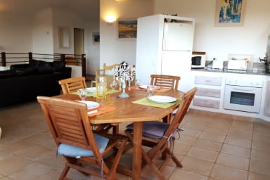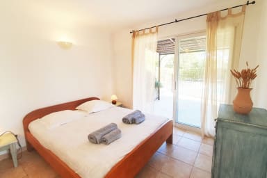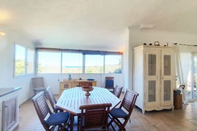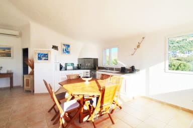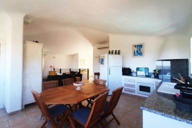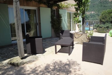 Casa Funta est une villa individuelle vue mer et montagne avec piscine chauffée fermée par barrière. idéalement située, proches des plages de pinarello et saint cyprien accueillant 8 personnes.