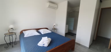 une chambre avec un lit de 160 et salle d'eau attenante avec wc.